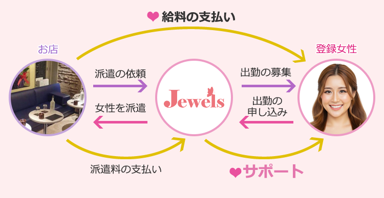 ジュエルズがお店の要望をしっかり確認していますので、お店で面接をする事なく働けます。なので安心してお店を選べます。